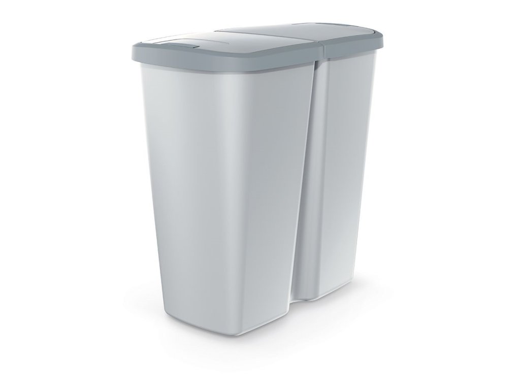Odpadkový koš o objemu 45 l, jedna velká vnitřní nádoba, dvojité víko s tlačítkovým otevíráním, možnost uchycení 2 odpadkových pytlů pro snadné třídění.