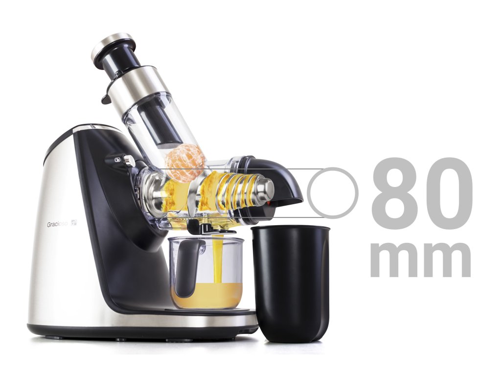 Plnící otvor je uzpůsobený pro vkládání velkých kusů ovoce a zeleniny, jako jsou mandarinky nebo jablíčka i pro odšťavňování podlouhlých surovin, například mrkve nebo řapíkatého celeru.