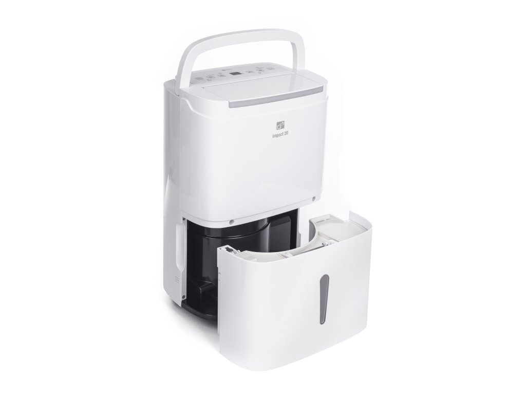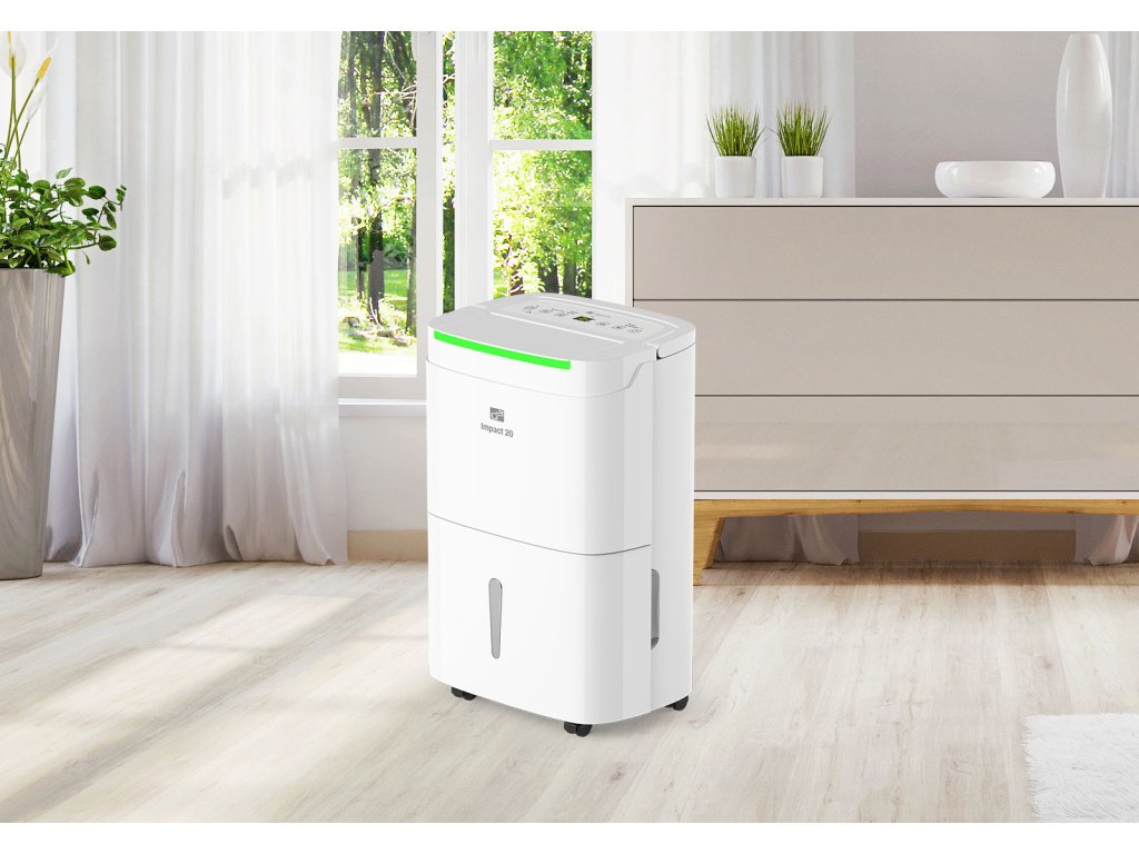 Odvlhčovač vzduchu G21 Impact 20 od české značky G21 má kapacitu 20 l za 24 hodin. Je vybaven 5l, dostatečně velkou nádržkou na kondenzát s průhledným indikátorem stavu. Pozorovat jej však ani nemusíte – odvlhčovač se při naplnění nádržky sám vypne. Odvlhčovač používá ekologické chladivo R290, které nepoškozuje ozónovou vrstvu.