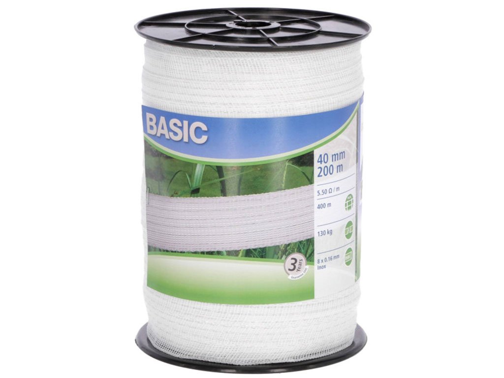 Ohradníková páska KERBL 441522 BASIC 40mm, 200m, 8 x 0,16 Niro, bílá