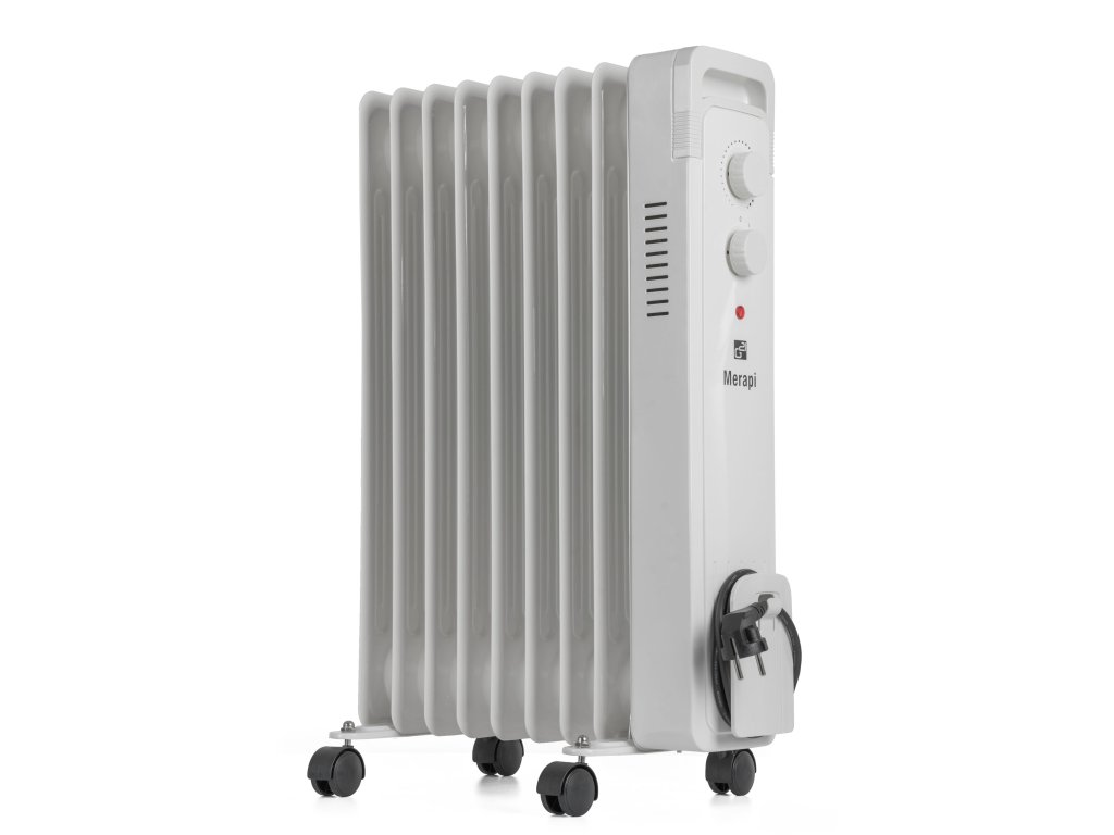 Výkonný, tichý, bezúdržbový, spolehlivý, bezpečný a efektivní – těchto šest slov dokonale vystihuje olejový radiátor G21 Merapi. Devítižebrový radiátor s vysokým výkonem a tichým chodem vyhřeje všechny prostory s nedostatečným nebo žádným vytápěním. Využijete jej například k přitápění v obytných prostorách včetně ložnic, k vyhřátí chaty a podobně.