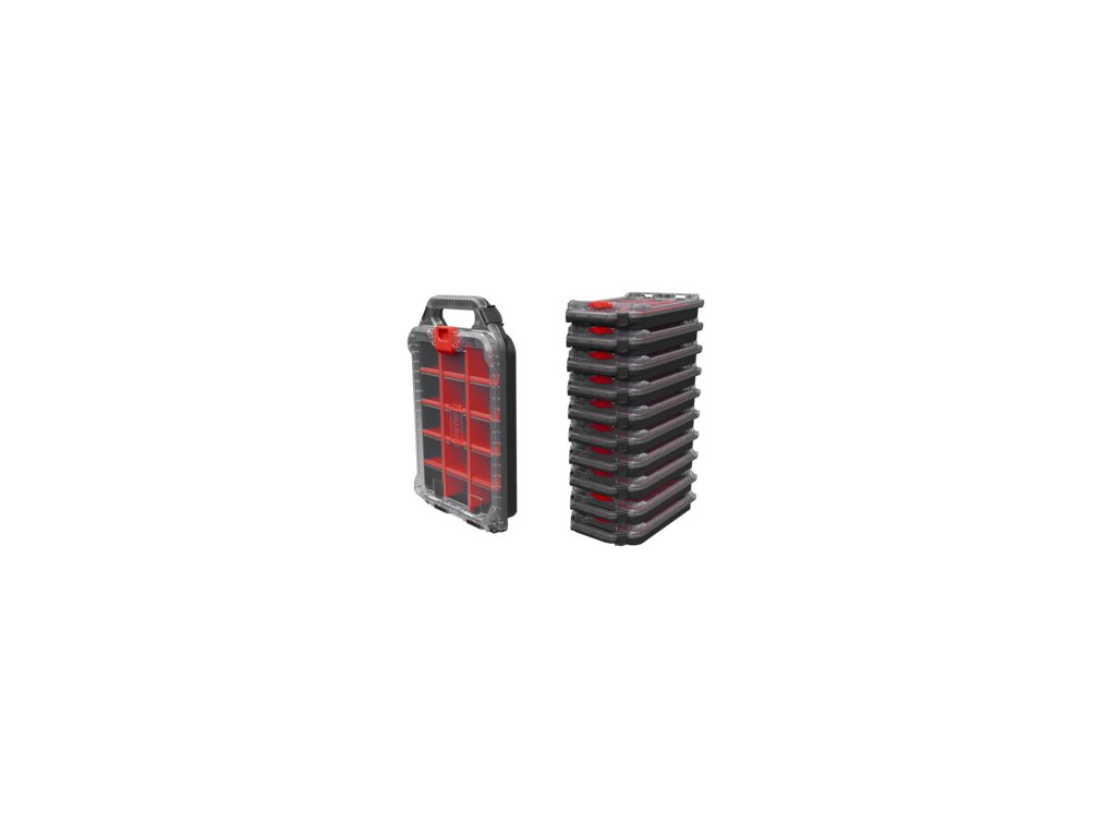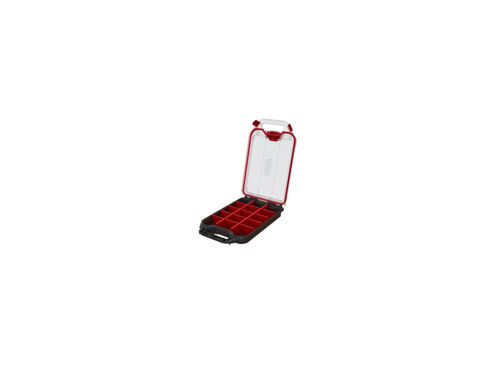 Skládá se ze 15 sekcí, do kterých umístíte drobné součástky, doplňky a jiné řemeslné potřeby. Přihrádky si přizpůsobíte podle vlastních potřeb a velikosti a množství náčiní. Velké madlo vám navíc zjednoduší přenášení organizéru.