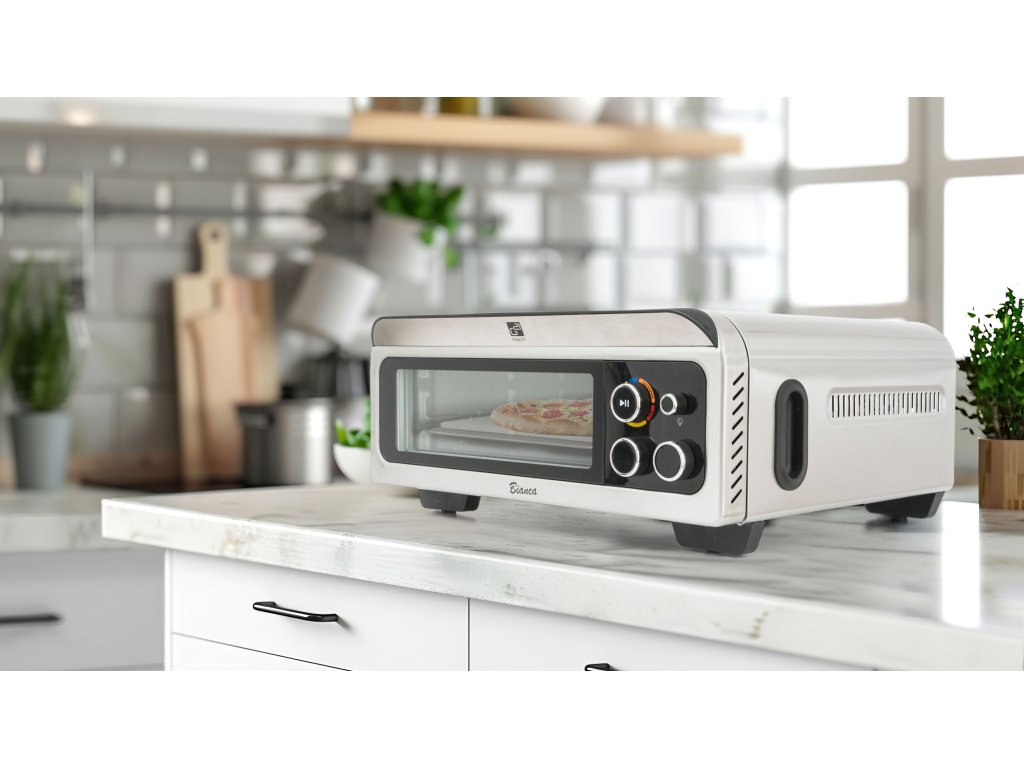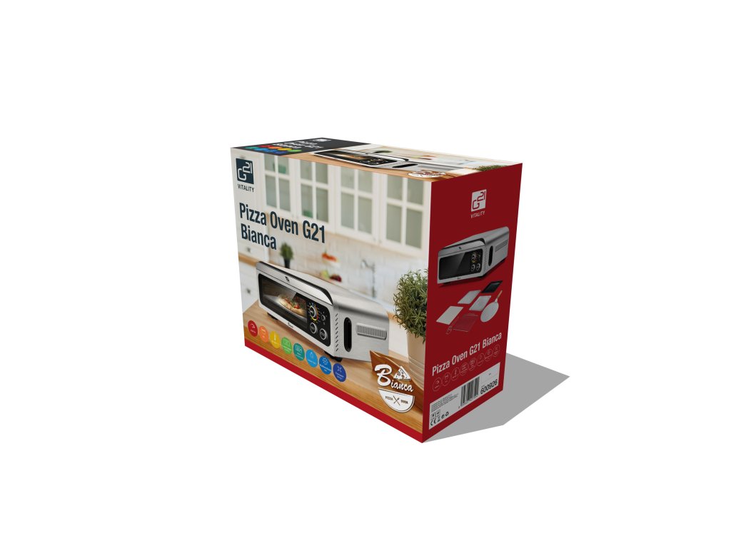 Připravujte nejen lahodnou pizzu o průměru až 28 cm, ale i širokou škálu dalších pokrmů s pomocí multifunkční pece na pizzu G21 Bianca z kvalitní nerezové oceli, která jí dodává odolnost a dlouhou životnost, a zároveň přináší moderní a stylový design, který se hodí do každé kuchyně.