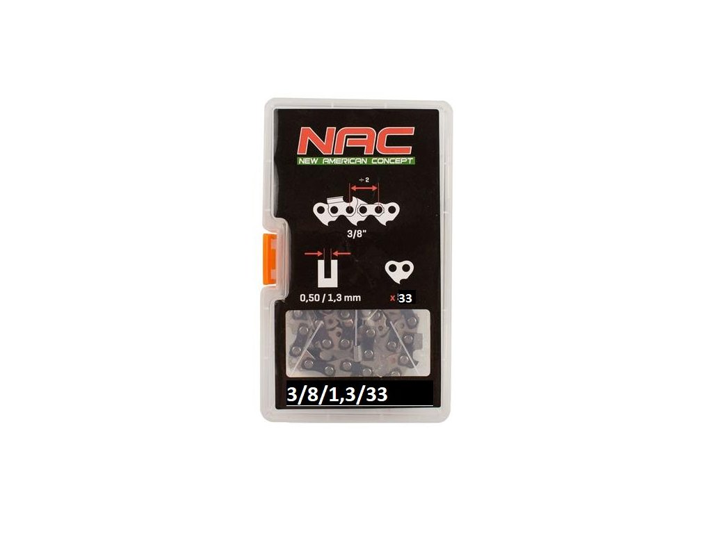 Vlastníte motorovou pilu NAC PHCBE90-CH a chcete si ještě více usnadnit práci se dřevem? Pořiďte si k ní 33článkový 3/8" pilový řetěz od značky NAC. Je vyrobený z kvalitních materiálů pomocí inovovaných technologií. Díky tomu je velmi odolný vůči ztupení a roztažení a má nízký zpětný ráz.
