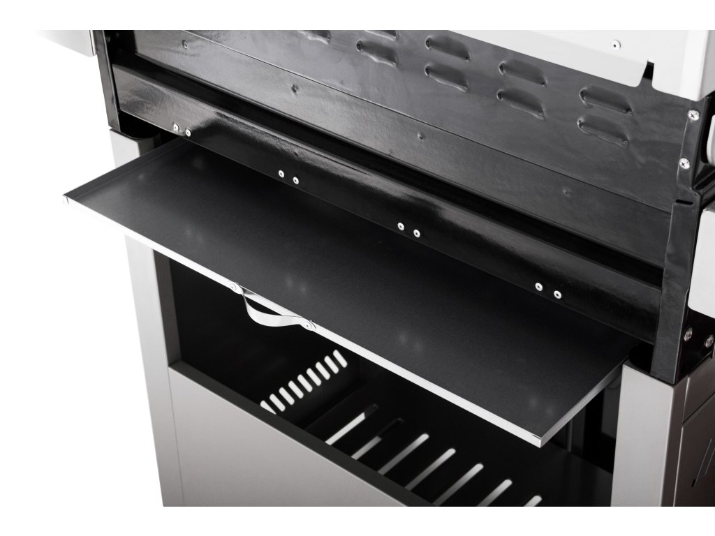 Už hotové grilované speciality můžete v teplém stavu udržovat i na nerezovém ohřívacím stojanu, kterým jsme gril také vybavili.