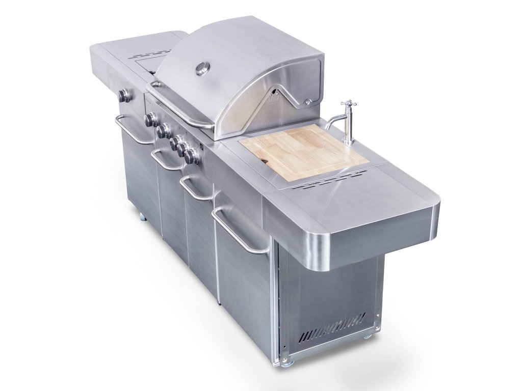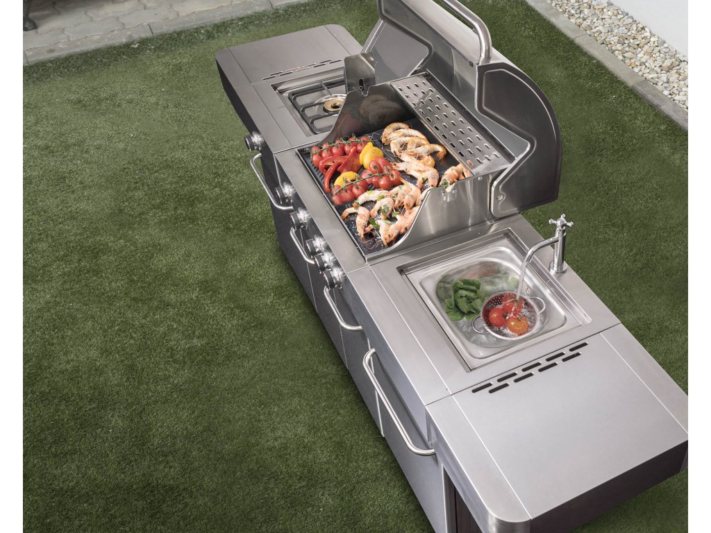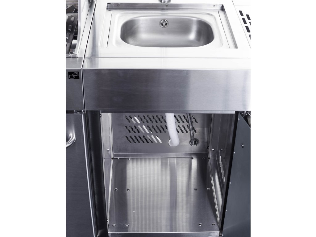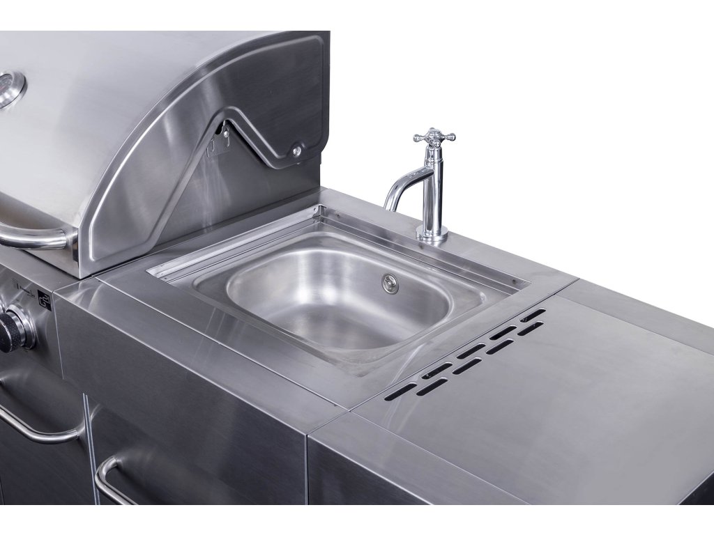 Co nesmí chybět v žádné kuchyni? Přeci dřez. A ten nechybí ani u grilu G21 BBQ Arizona Premium line. Vestavný dřez má i přívod na vodu ze zahradní hadice. A po opláchnutí nádobí dřez jen zakryjte prkénkem a rázem získáte větší pracovní plochu k přípravě pochoutek na letní grilování.