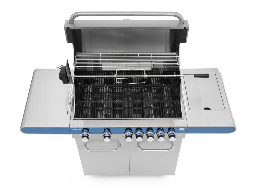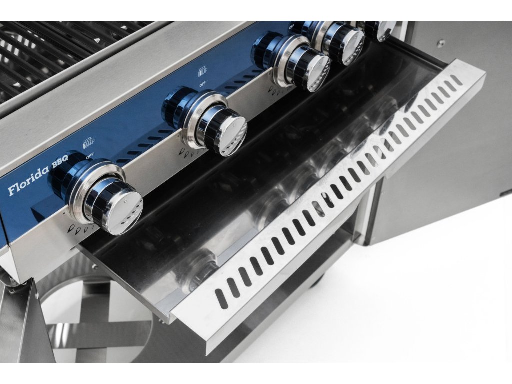 Zahradní plynový gril Florida BBQ je dokonalým spojením funkcí, technologických vychytávek a ohromujícího designu. Nerezový gril se 7 hořáky (7 x 4 kW), prakticky řešenými odkládacími plochami i teploměrem ve víku stojí za pozornost.