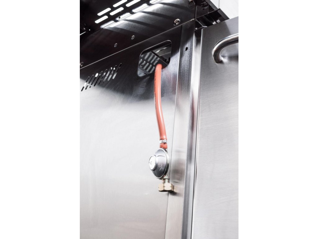 Pod hořáky a dřezem jsou vestavěné skříňky s dvířky pro ochranu uložených věcí před počasím nebo prachem. Uskladněte zde grilovací náčiní i nádobí nebo plynovou bombu ve dnech, kdy gril nepoužíváte.