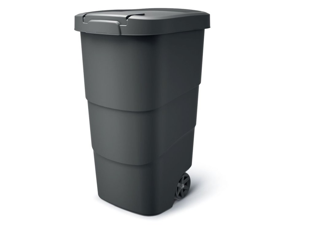 Do popelnice Prosperplast Wheeler s objemem 110 l se vejde velké množství odpadu. Je vybavená dobře těsnícím víkem. Díky němu neucítíte nepříjemné pachy vyhozených věcí, i když projdete kolem popelnice. Na recyklovaném víku navíc najdete praktickou západku. Pokud venku fouká silný vítr, zabrání nechtěnému otevření popelnice. Nemusíte se tedy obávat, že by se vám její obsah vysypal.