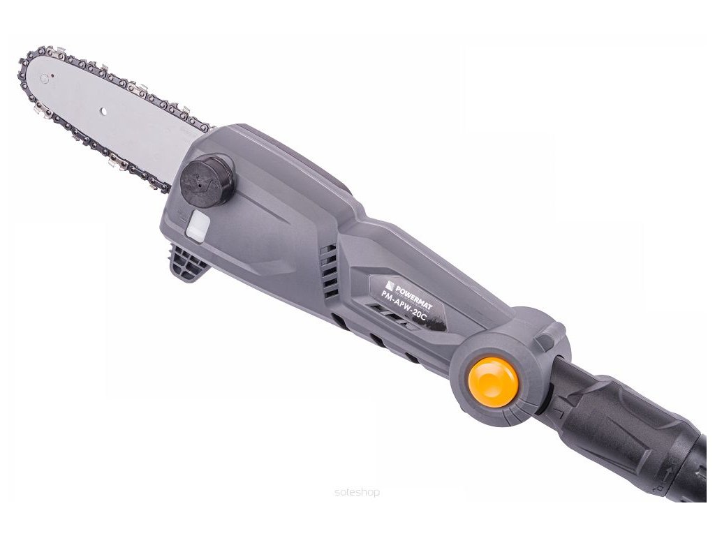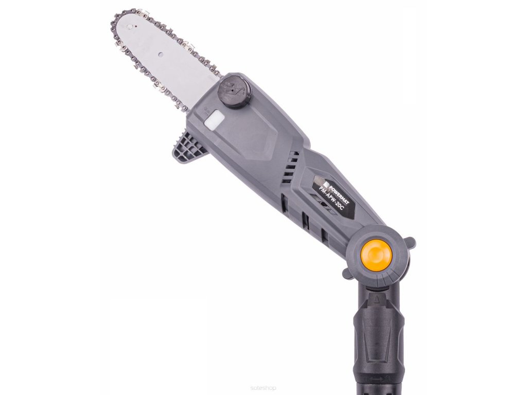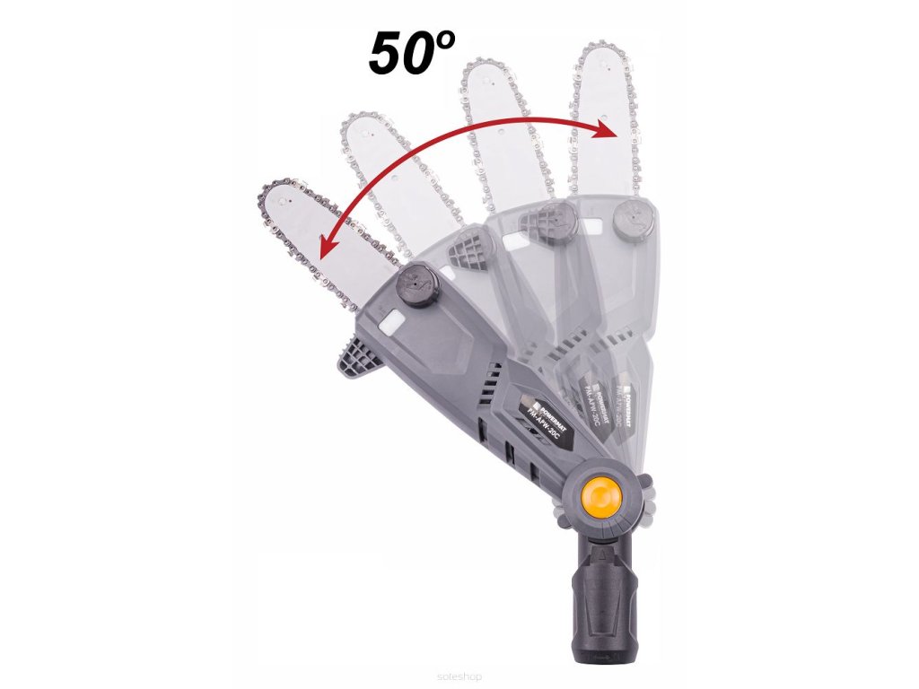 Akumulátorová vyvětvovací pila PM-APW-20C se čtyřstupňovým nastavením sklonu od Powermat s vysoce kvalitní lištou a řetězem.