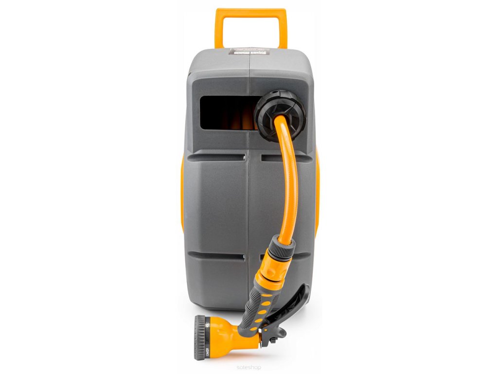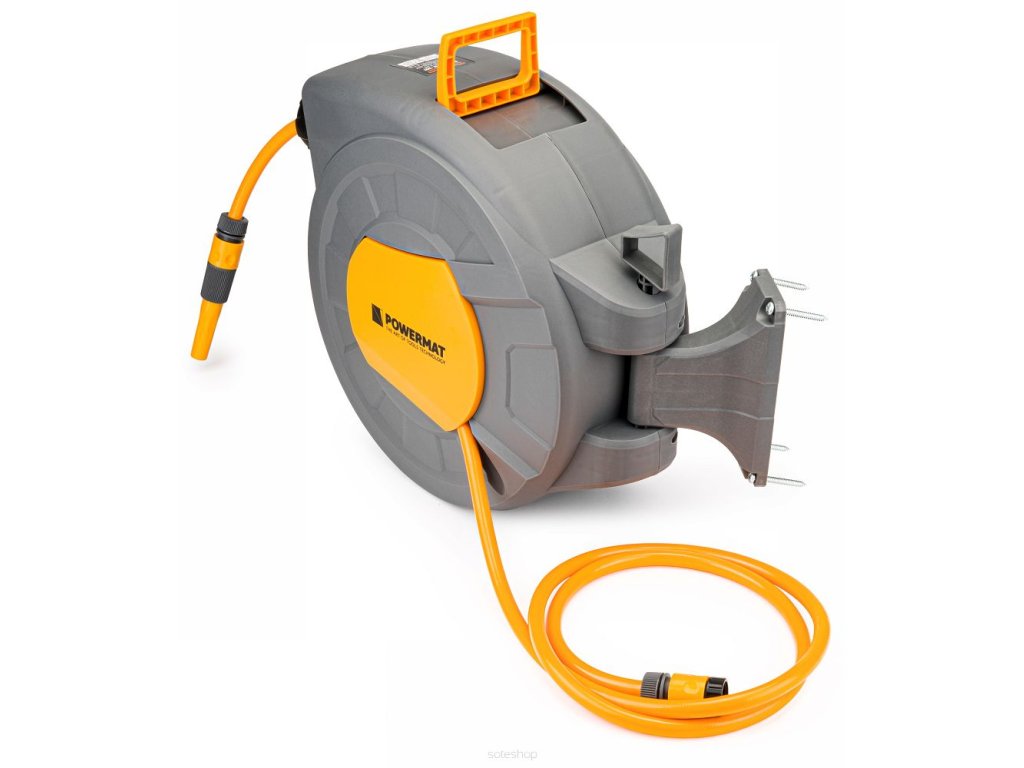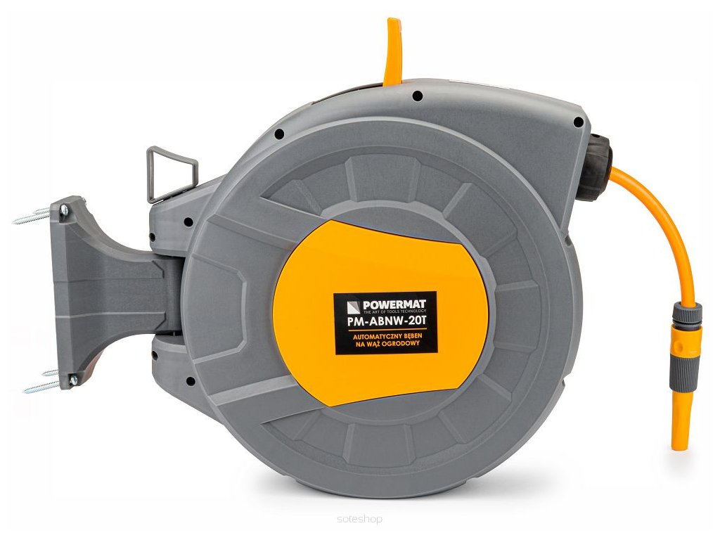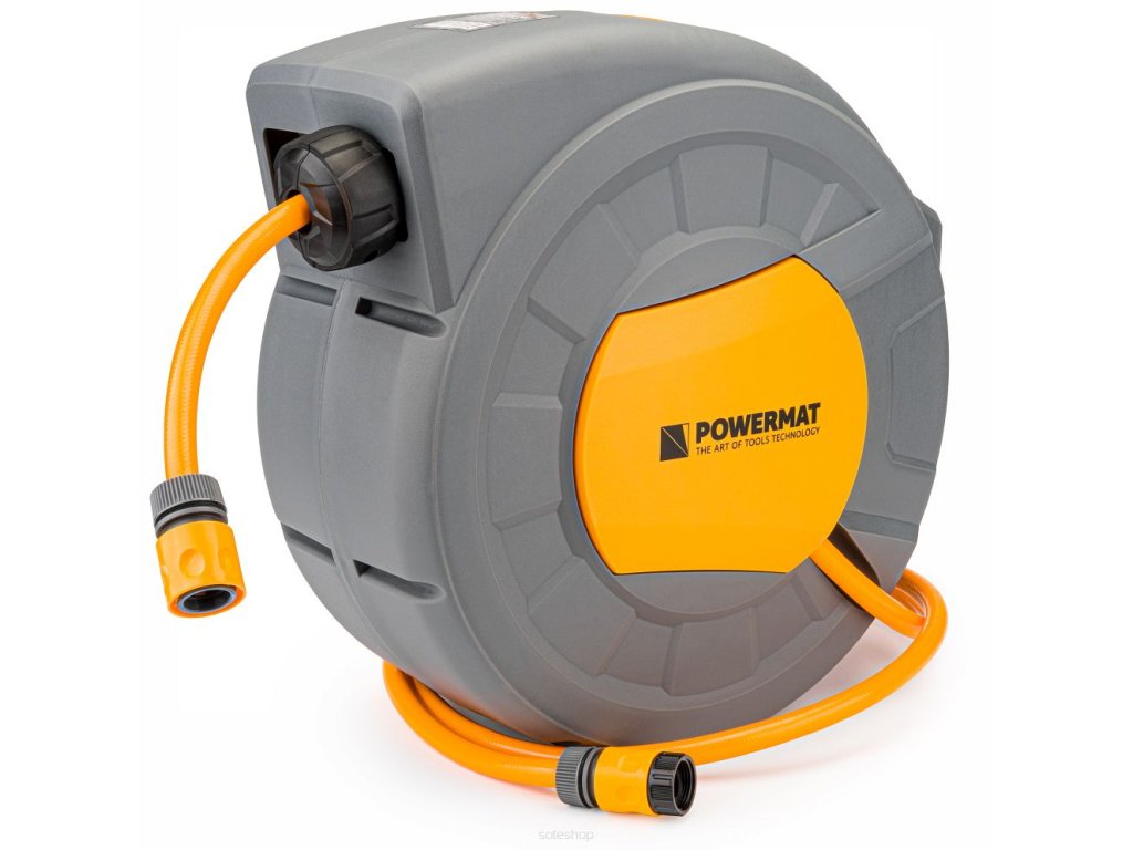 Automatický naviják zahradní hadice POWERMAT je navržen pro pohodlné skladování a používání zahradní hadice. Díky automatickému procesu navíjení hadice nebylo zavlažování, kropení a všechny druhy práce se zahradní hadicí nikdy tak příjemné. Hadicový naviják zajistí pohodlí při práci a zabrání zamotání a ohnutí hadice. Naviják díky držáku snadno připevníte na zeď a otočíte.