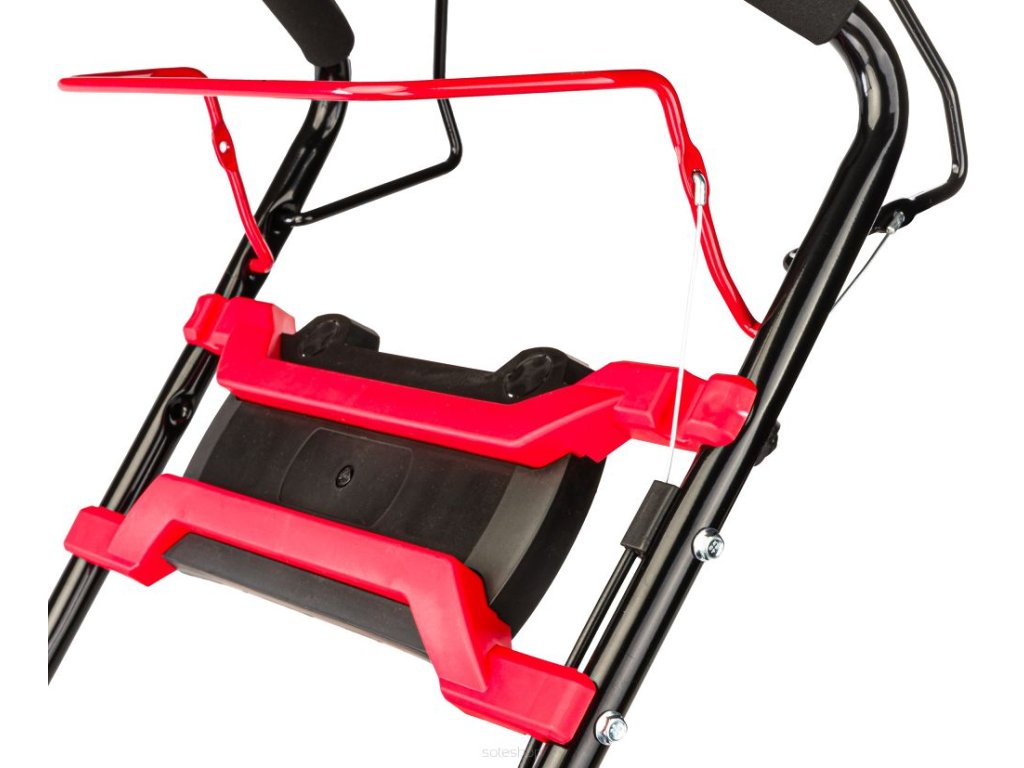 - Středová rukojeť je navržena pro maximální uživatelský komfort. Díky ergonomickému designu se sekačka zvedá rovnoměrně, čímž se eliminuje zbytečné naklánění sekačky dopředu nebo dozadu.