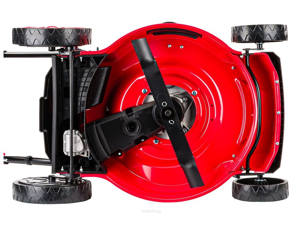 - Má dlouhý žací nůž o šířce 51 cm, který zrychluje pracovní tempo zejména na menších a středně velkých pozemcích. Poměrně lehká konstrukce usnadňuje manévrování i na těžko přístupných místech.