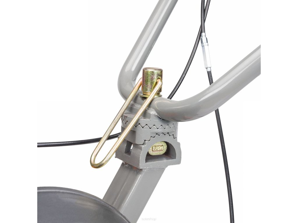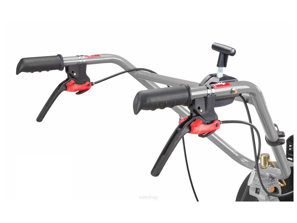 - Na rukojetích jsou páčky pro zapnutí pohonu vpřed a vzad a páka pro nastavení plynu motoru.