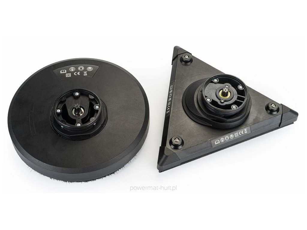 - Bruska je vybaven dvěma hlavami, trojúhelníkovou a kulatou, které lze velmi snadno vyměnit.