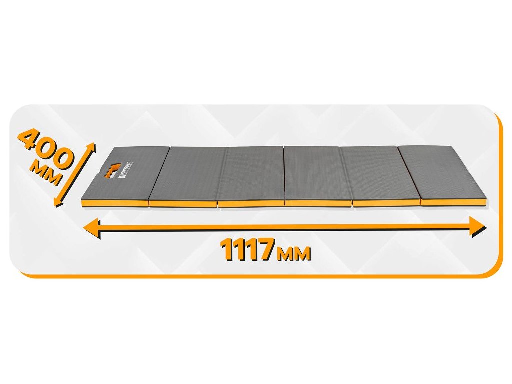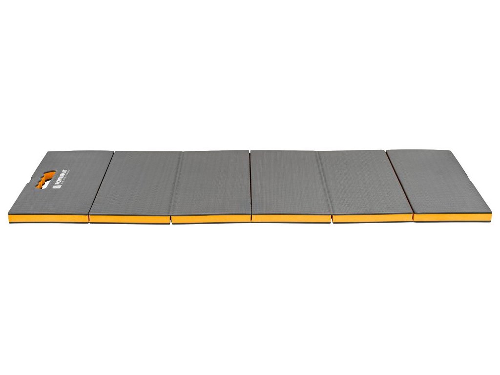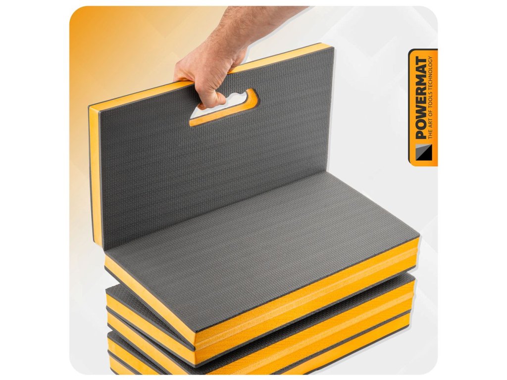 Lehká a odolná dílenská podložka PM-MWR-117T z pěny EVA (tloušťka 30 mm) tlumí tlak i vibrace, izoluje od chladu a vlhkosti a výrazně zvyšuje komfort při klečení i ležení. Šestidílná skládací konstrukce se přizpůsobí podlaze, usnadní přenášení i skladování; texturovaný protiskluzový povrch stabilizuje pracovní polohu. Uzavřená buněčná struktura neabsorbuje vodu, díky čemuž je podložka snadno omyvatelná a vhodná do dílny, domu, na zahradu i do terénu. Součástí je popruh se suchým zipem pro rychlé stažení do kompaktního tvaru.