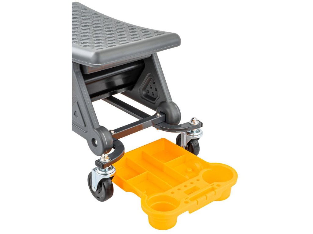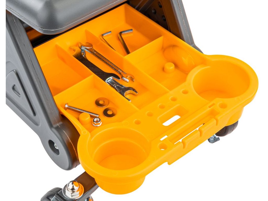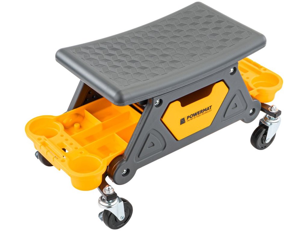 Dílenské sedátko Powermat PM-SWA-200T zvyšuje ergonomii práce na nízké výšce. Kompaktní rozměry 67 × 25,5 × 35 cm usnadňují manévrování v omezeném prostoru, robustní konstrukce zajišťuje stabilitu a dlouhou životnost. Sedák 46 × 25,5 cm poskytuje jistou oporu při delších úkonech, kolečka s brzdami umožňují plynulý přesun i bezpečné zafixování. Tři vyjímatelné misky udržují nářadí a drobnosti po ruce, takže práce probíhá rychleji a organizovaněji.