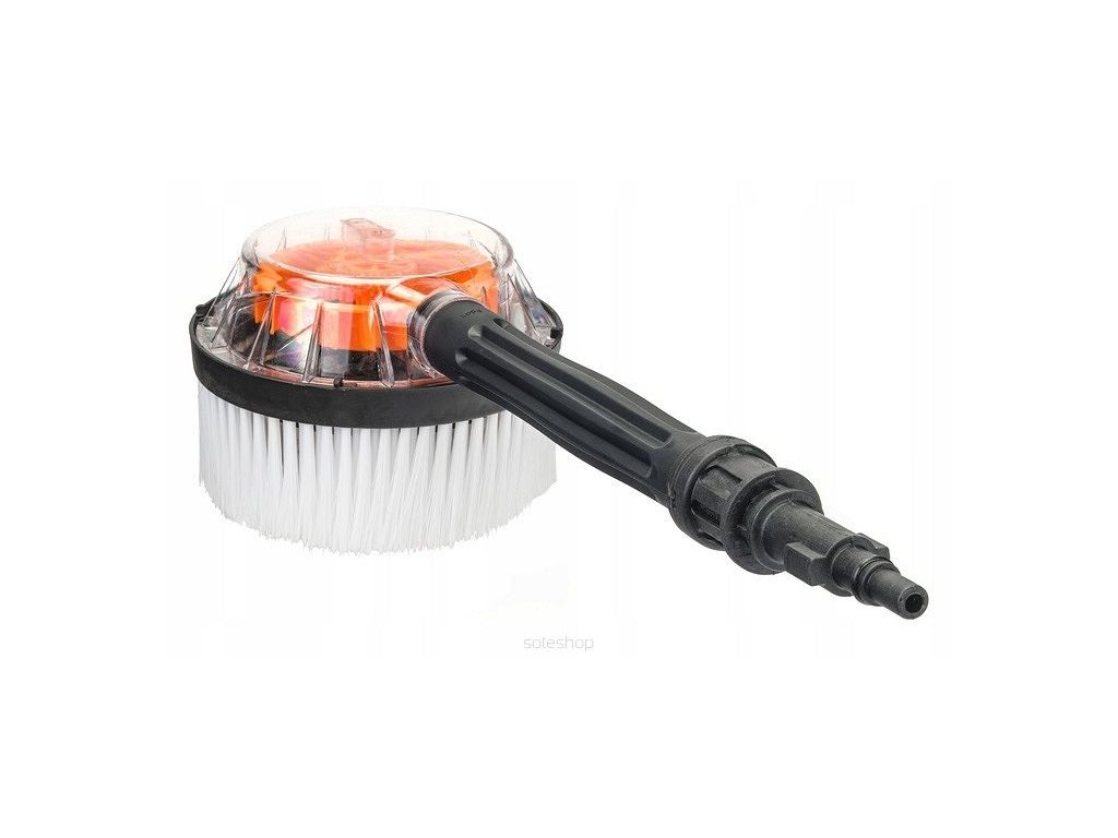 Vysoce kvalitní rotační kartáč. Ideální nejen pro mytí auta, ale i pro rovné povrchy. Proud vody z čističe způsobuje, že se kartáč otáčí, což umožňuje účinné odstranění všech druhů nečistot, dokonce i těch nejodolnějších. Rotační kartáč zvyšuje účinnost čištění až třikrát a jeho měkké štětiny nepoškrábou lakované povrchy.