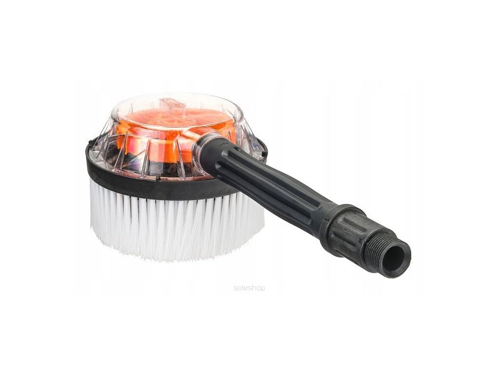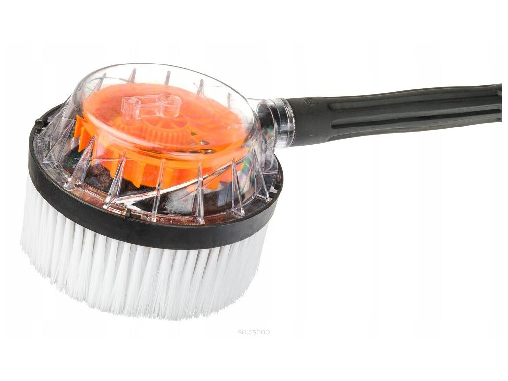 Vysoce kvalitní rotační kartáč. Ideální nejen pro mytí auta, ale i pro rovné povrchy. Proud vody z čističe způsobuje, že se kartáč otáčí, což umožňuje účinné odstranění všech druhů nečistot, dokonce i těch nejodolnějších. Rotační kartáč zvyšuje účinnost čištění až třikrát a jeho měkké štětiny nepoškrábou lakované povrchy.