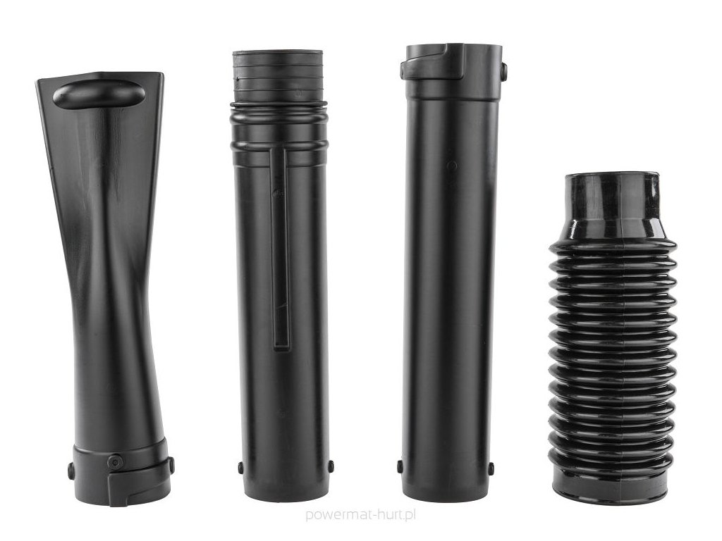 Konstrukce výstupu foukače se skládá z několika částí pevných trubek vyrobených z odolného a lehkého plastu.