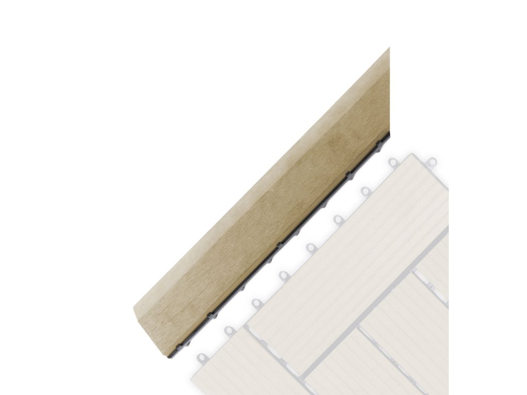 Rohová levá přechodová lišta v barvě cumaru s rozměry 38,5 x 7,5 cm poskytuje estetický dojem a bezpečnost při užívání podlahy nebo terasy. Je dokonalým detailem a slouží k zakrytí rozdílů mezi výškově různými typy podlah.