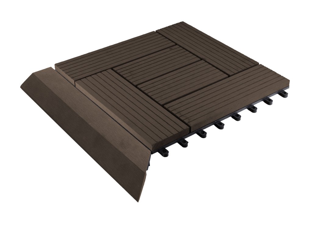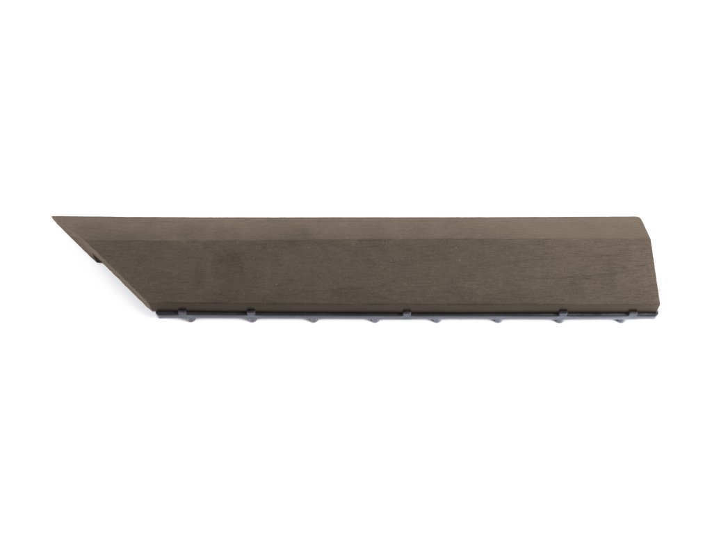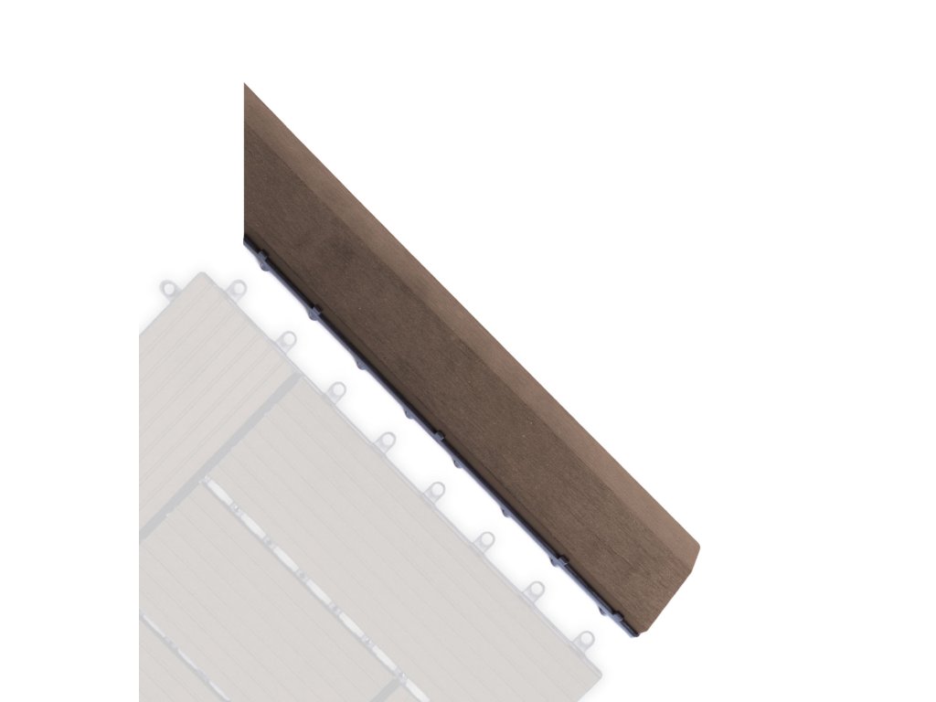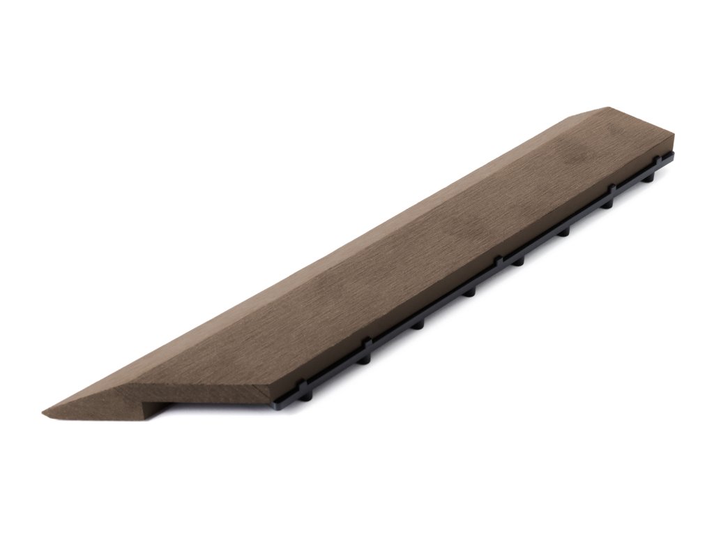Rohová pravá přechodová lišta v barvě indický teak s rozměry 38,5 x 7,5 cm poskytuje estetický dojem a bezpečnost při užívání podlahy nebo terasy. Je dokonalým detailem a slouží k zakrytí rozdílů mezi výškově různými typy podlah.