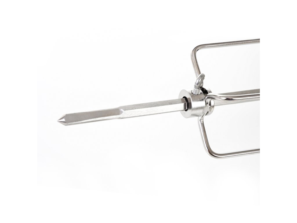 Grilovací jehla s motorem je vyrobena z nerezové oceli a z obou stran je opatřena čtyřmi jehlicemi s aretačními šrouby, díky kterým si můžete jehlice nastavit podle vlastní potřeby.