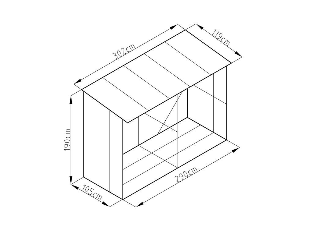 - Rozměry přístřešku se střechou (š x v x d): 302 x 190 x 119 cm