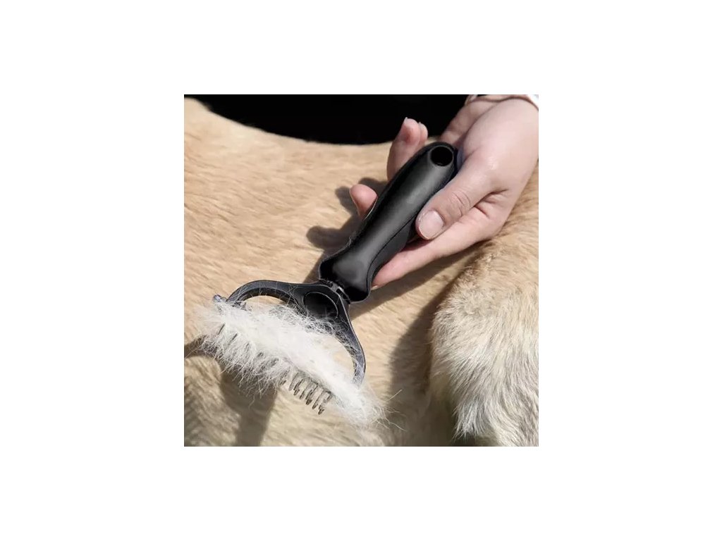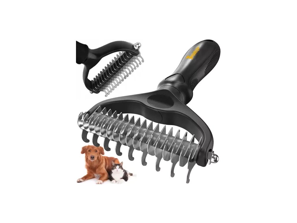 - Oboustranný design: jedna strana s 9 zuby (0,8 cm) pro hustou srst, druhá se 17 zuby (0,4 cm) pro jemnější srst