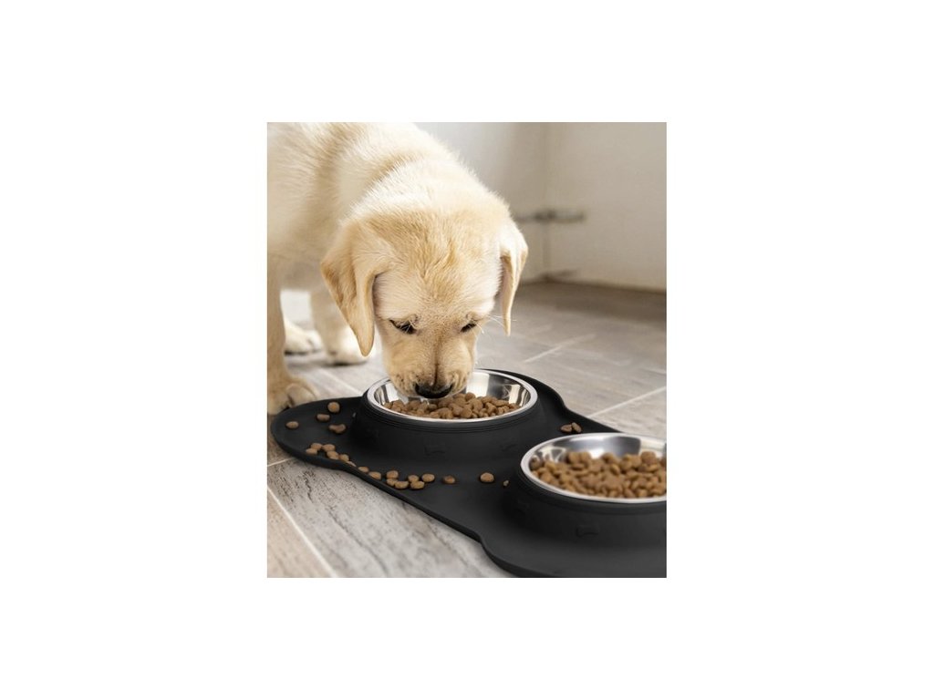 - Čistota kolem misek: silikonová podložka zachytí drobky i rozlitou vodu