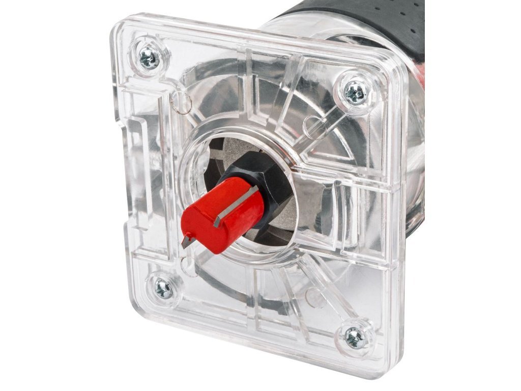 - Průhledná základna: Zajišťuje maximální přehled při práci a zvyšuje přesnost frézování.