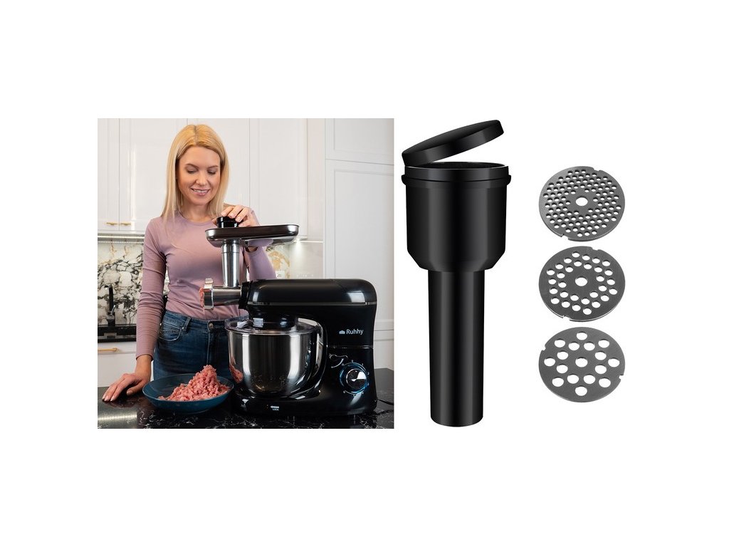 - Příslušenství: Mlýnek na maso, mixovací nástavec, tvořítko na cukroví a víko.