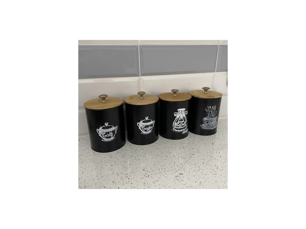 Stylová sada 4 kuchyňských nádob Ruhhy 24578 s elegantním černým designem a bambusovými víky se perfektně hodí do moderních i industriálních kuchyní. Nádoby pomáhají udržovat pořádek, chrání potraviny před vlhkostí a jsou ideální pro skladování základních surovin.