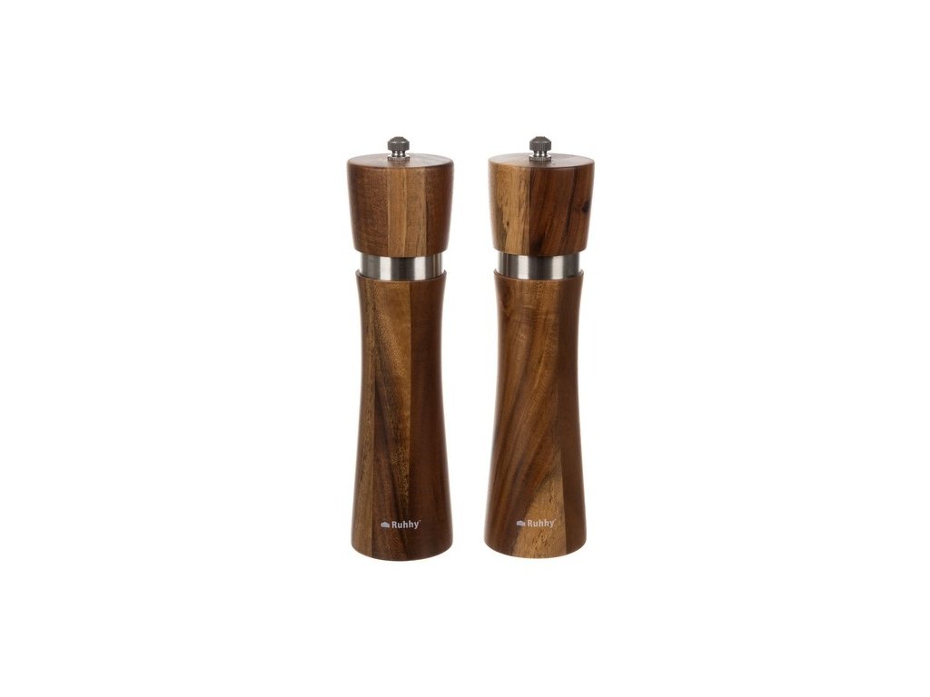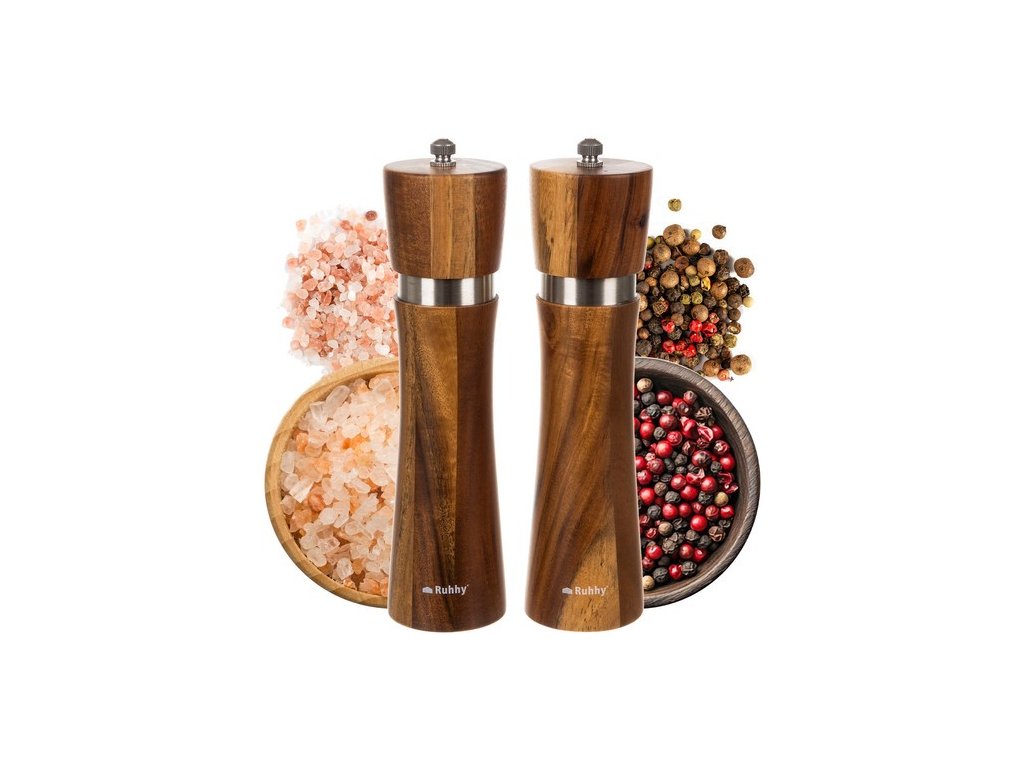 Sada 2 dřevěných mlýnků Ruhhy 24650 s keramickým mlecím mechanismem a nastavitelnou hrubostí mletí. Ideální pro milovníky kvalitního koření – nastavte si jemnost mletí přesně podle chuti. Keramické jádro zvládne i tvrdou himalájskou sůl či pepř, a díky elegantnímu designu se perfektně hodí do každé kuchyně.