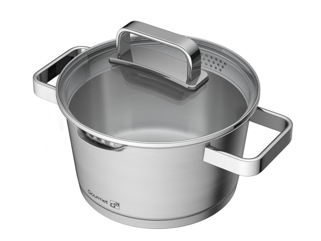 Obrovskou výhodou oproti běžně používaným hrncům jsou výparníky/cedníky, kterými jsme osadili všechny poklice v sadě. Už si nepopálíte ruce při slévání horké vody z brambor či těstovin. Pro rychlejší uvedení surovin k varu jen pootočíte poklicí a výparník/cedník se uzavře.