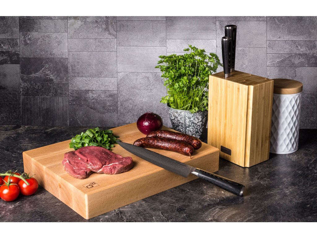 - bambusový blok pro správné a šetrné ukládání