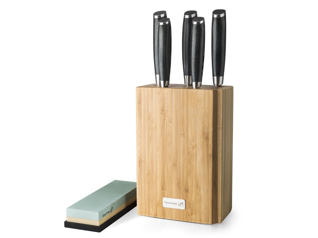 Sada nožů G21 Gourmet Damascus v bambusovém bloku 5 ks + brusný kámen