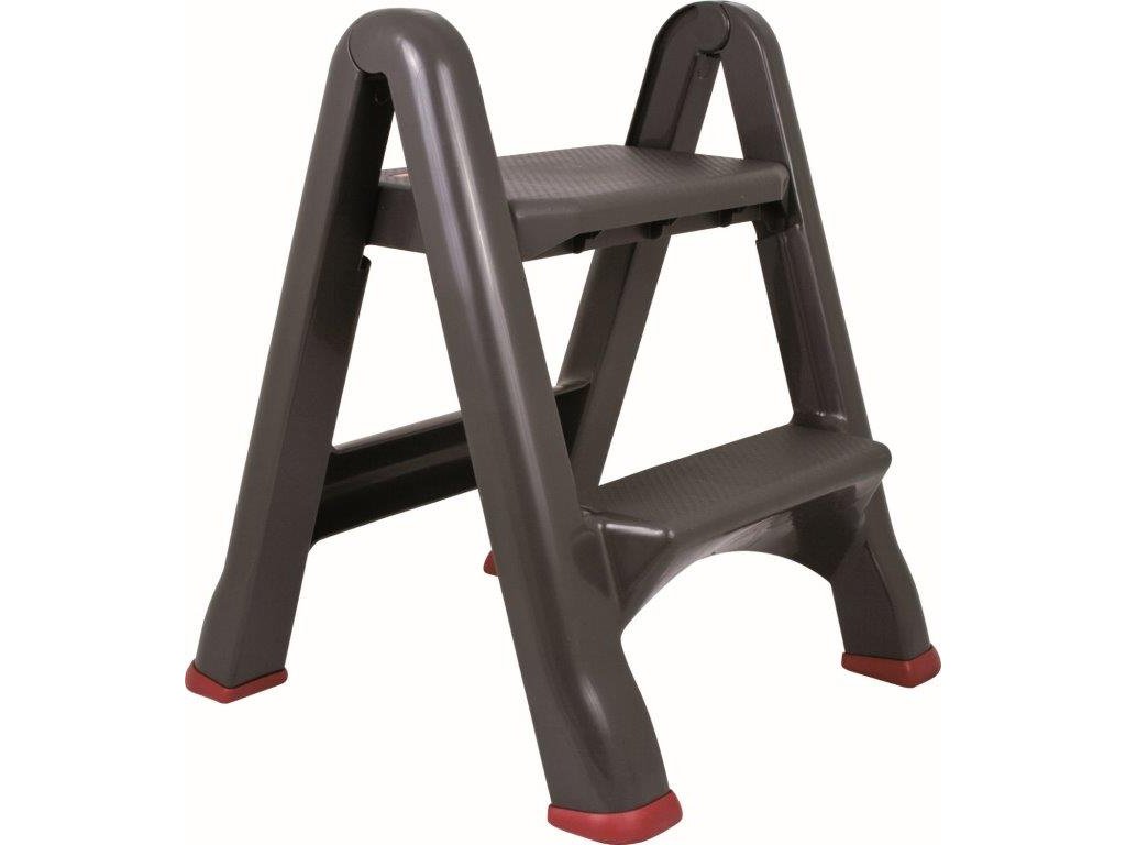 Skládací plastové schůdky se 2 stupněmi. Nosnost 150 kg, první schod je ve výšce 22 cm. Protiskluzové nohy pro bezpečnou práci ve výšce. Celková hmotnost 3,12 kg, černá barva.