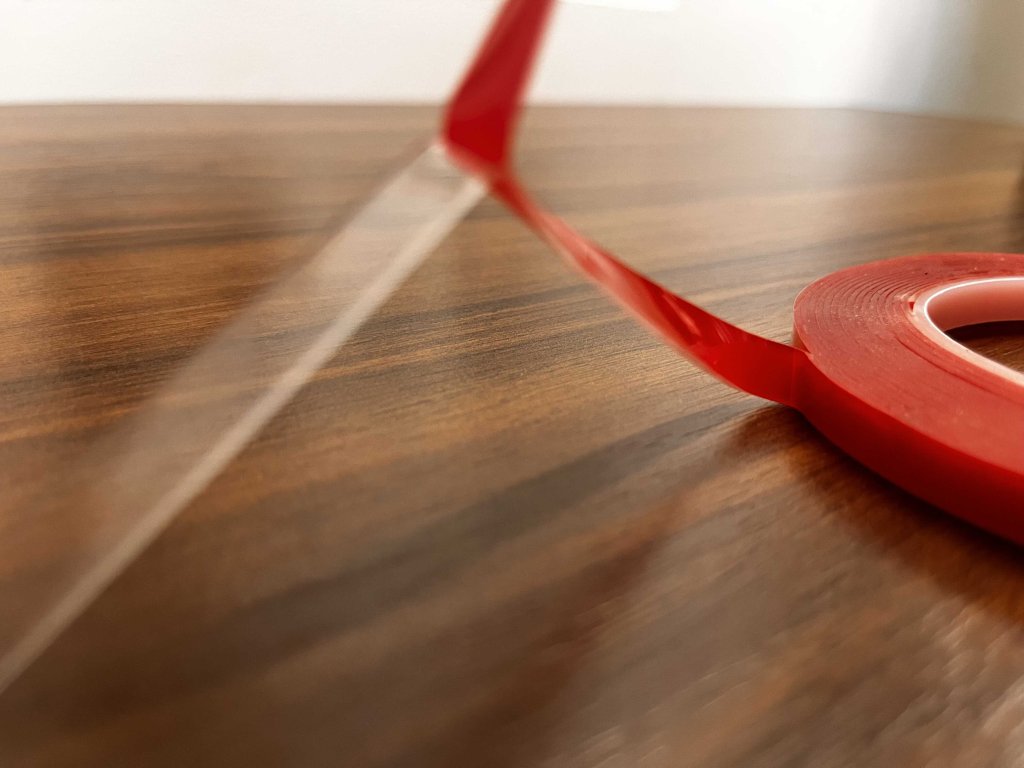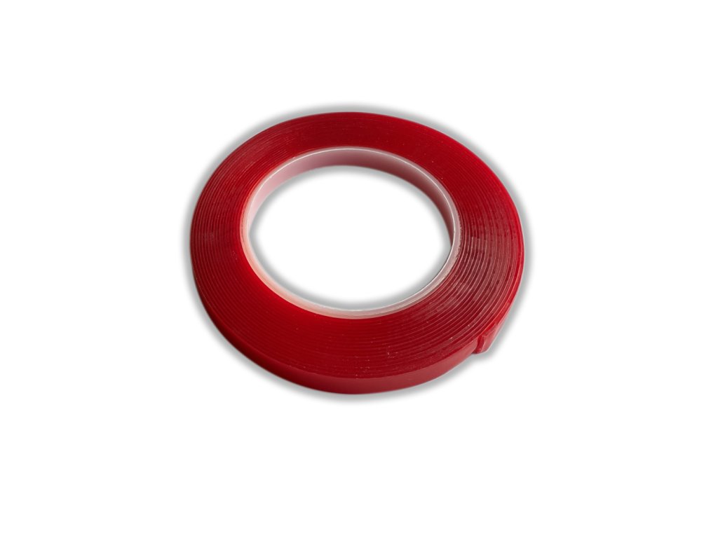 - Zcela průhledné (transparentní): Těsnění je zcela průhledné, což zajišťuje nenápadnost a estetický vzhled. Červená je pouze ochranná páska, která těsnění od sebe odděluje.