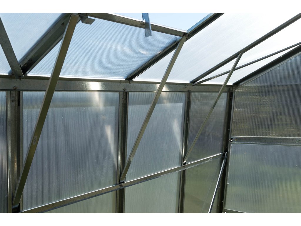 Kvalitní pozinkovaná konstrukce je vysoce odolná a díky bočním vzpěrám i stabilnější než běžné skleníky. Oproti ostatním modelům mají i skleníky G21 jednu nadstandardní výhodu – promyšlené upínání panelů do konstrukce.