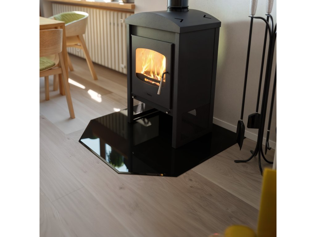 Černé sklo je vhodné pod většinu typů krbových kamen a s nosností až 250 kg bez problémů unese i těžší modely. Díky svému čistému, tónovanému provedení skvěle zapadne do moderních i industriálních interiérů.