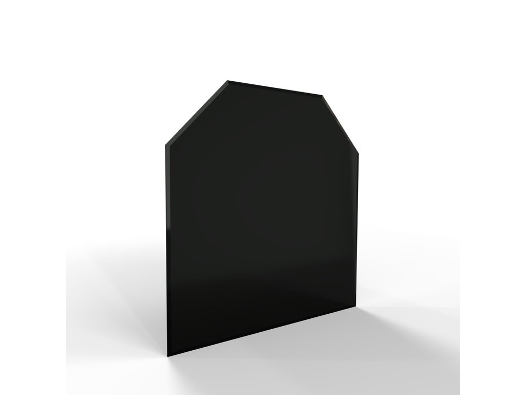 Černěné sklo pod krbová kamna – tvrzené bezpečnostní sklo 6 mm s fazetou