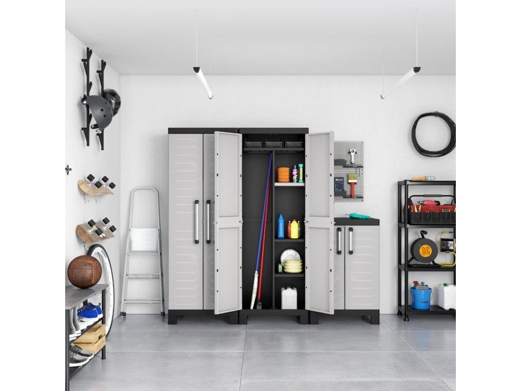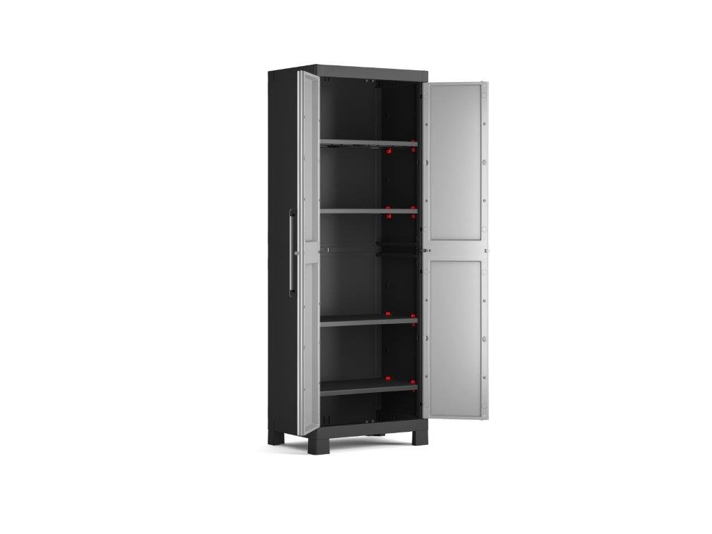 Skříň Keter Detroit High obsahuje celkem 4 přídavné police, které maximálně zpřehlední organizaci vnitřního prostoru. Každá z nich využívá bezpečnostní pojistku SLO pro snadné výškové přizpůsobení a rovněž nabízí maximální nosnost až 15 kg, což přijde vhod pro výrazně těžší předměty všeho druhu. V útrobách skříně tak pohodlně uchováte i rozličné dílenské a zahradní nářadí, které by se jinam nevešlo. Velkou výhodou produktové řady Keter Detroit je také jednotný spojovací systém, díky kterému vytvoříte kompletní skříňovou stěnu pro všestranné využití dle vašich potřeb a preferencí.