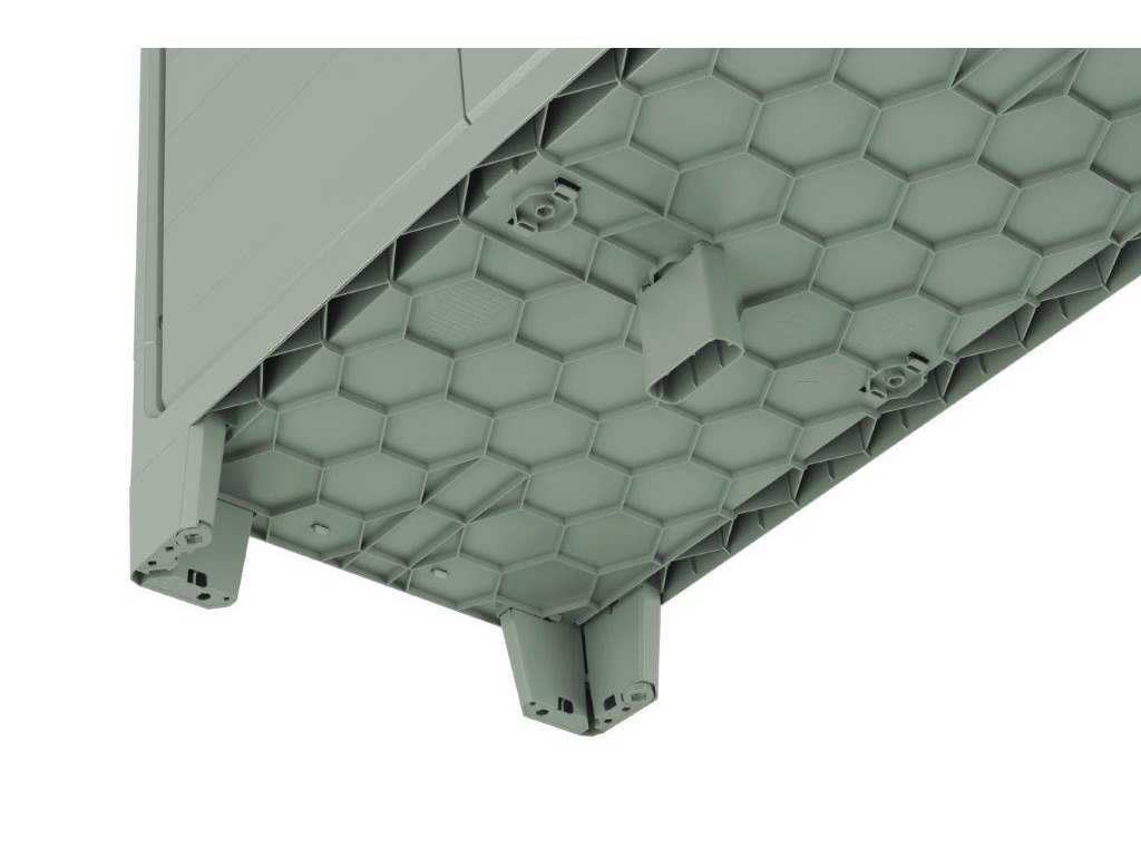Skříň je vyrobená z 80 % z recyklovaného plastu. Díky možnosti uzamčení ochráníte veškeré uschované cennosti před odcizením, tudíž bude vnitřní obsah v bezpečí za každé situace.