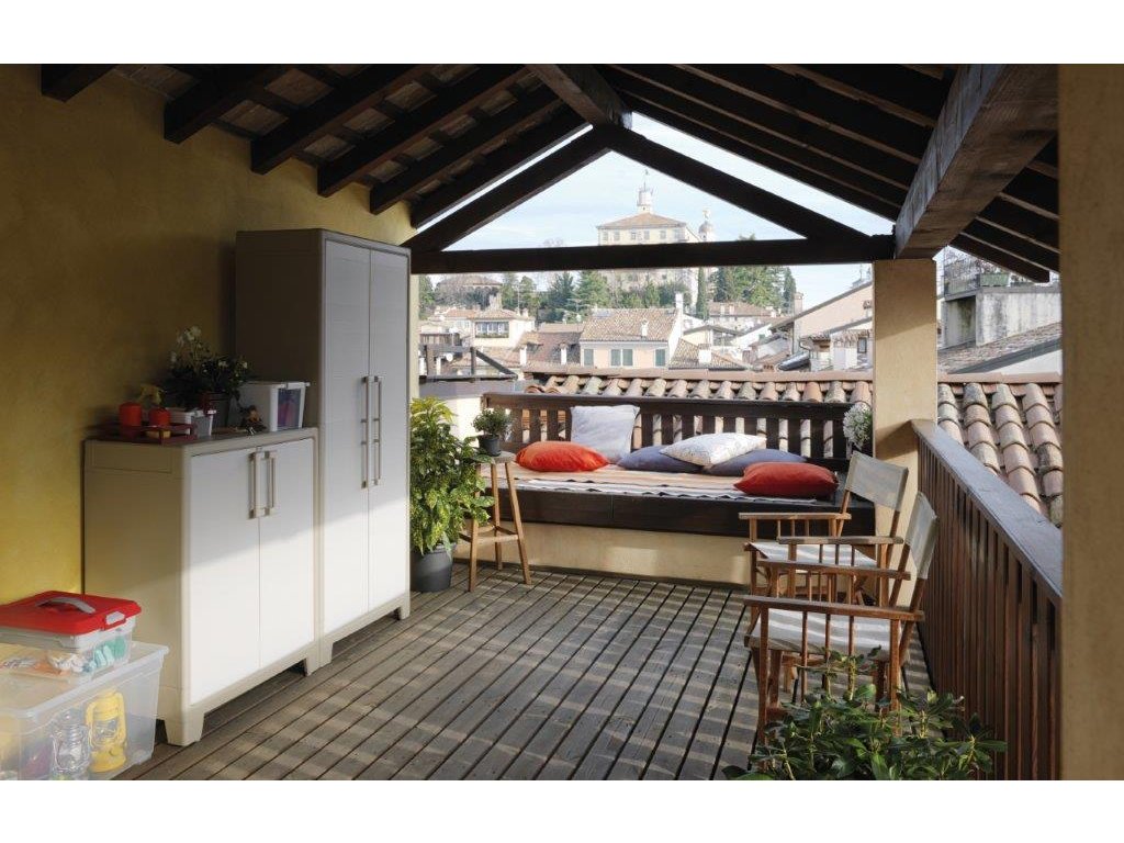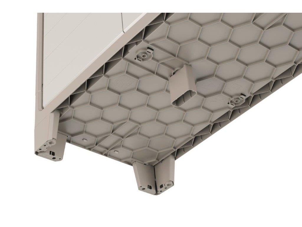 Skříň je vyrobena z kvalitního plastu s ochranou proti UV záření, proto se nemusíte bát vyblednutí barev ani deformace materiálu při vystavení slunečním paprskům. Voděodolnost s certifikací IPX3 zajišťuje ochranu před stříkající vodou, což oceníte hlavně v garáži nebo na kryté terase.