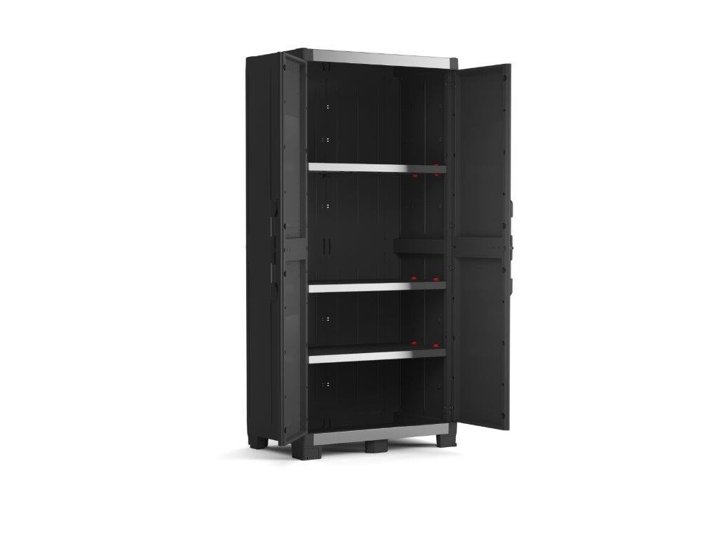 - 1x skříň Keter XL Garage High s policemi, nožičkami a uzamykatelnými dveřmi