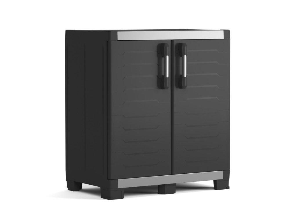 Bezúdržbovou garážovou skříň Keter XL Garage Low s vysokou odolností vůči atmosférickým vlivům a mechanickému opotřebení a s možností uzamčení využijete v domácnosti, v garáži, v kůlně, ve sklepních prostorách, pod přístřeškem či kdekoliv jinde. Skříň je vybavená zvýšenými nožičkami pro snadné a praktické čištění podlah v interiéru, což oceníte i při úklidu.