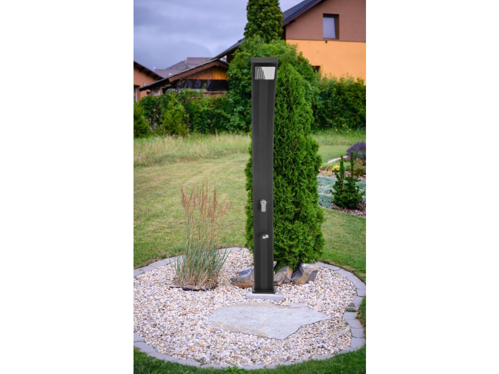 Hliníkové tělo sprchy slouží zároveň jako solární kolektor – absorbuje sluneční paprsky a ohřívá vodu bez potřeby elektřiny či plynu. Když si dopřejete sprchu před plaváním, ochráníte vodu v bazénu před zbytečným znečištěním. Tím si výrazně usnadníte jeho údržbu.
