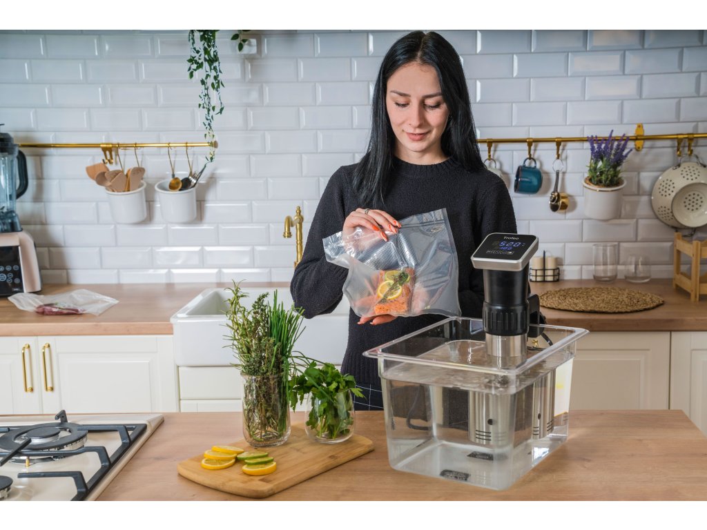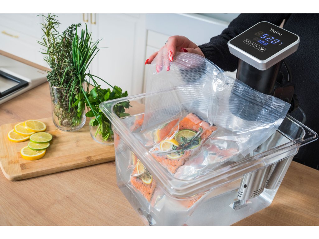 - Snadná příprava – pokud máte zavakuované suroviny zamražené, vložíte jen příslušný počet porcí do hrnce s vodou, kde se rozmrazí a připraví sous-vide metodou