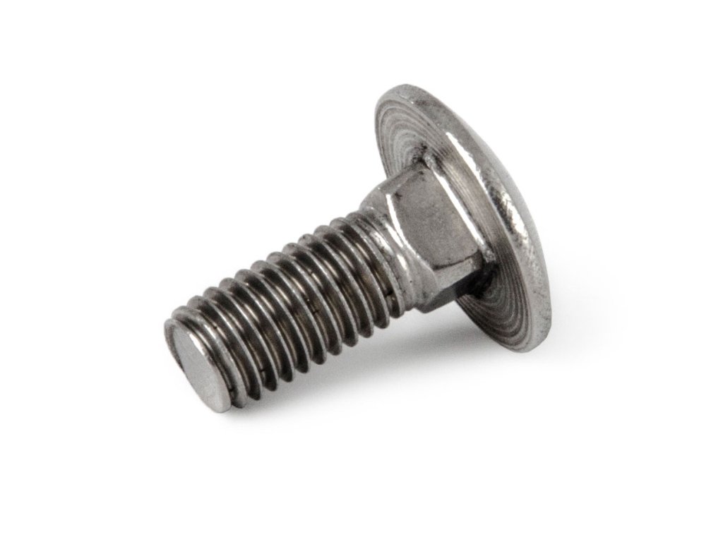 Vratový šroub G21, rozměry M10x25, DIN 603, materiál nerez. Můžete koupit v krabičce po 100 kusech.